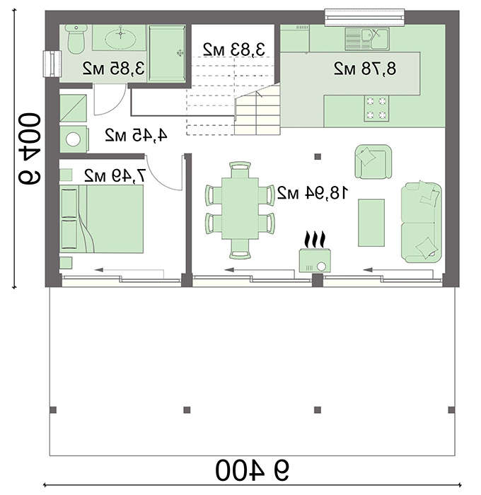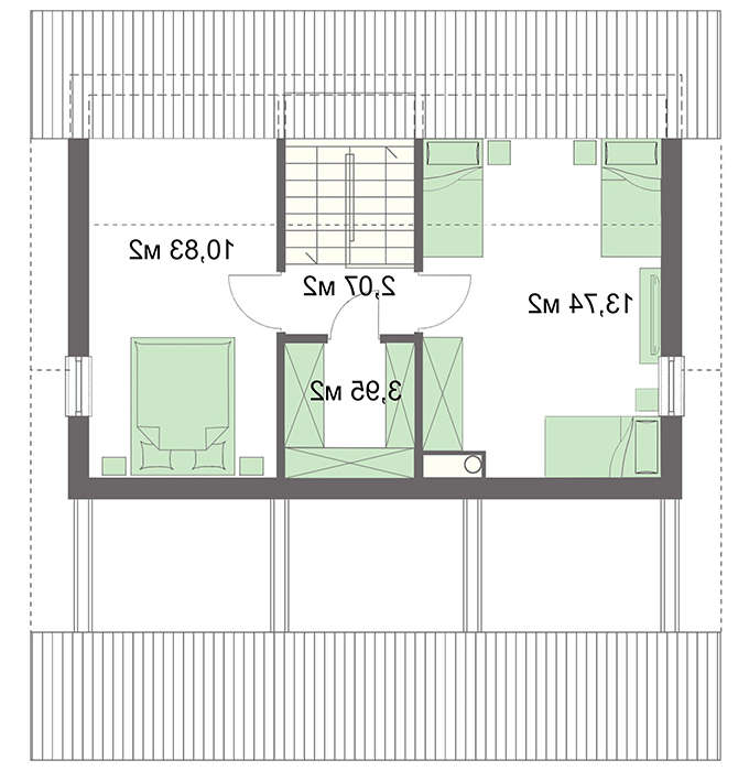 Проект содержит три раздела – Архитектурный, Конструктивный и Инженерный: водоснабжение, отопление, вентиляция, канализация, электроснабжение (приобретается за дополнительную плату) + Пояснительная записка.