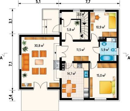 Высота дома:8.70 м