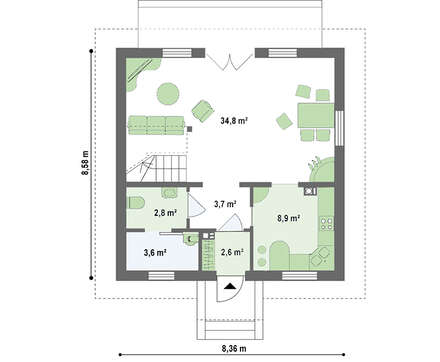 Проект содержит три раздела – Архитектурный, Конструктивный и Инженерный: водоснабжение, отопление, вентиляция, канализация, электроснабжение (приобретается за дополнительную плату) + Пояснительная записка.