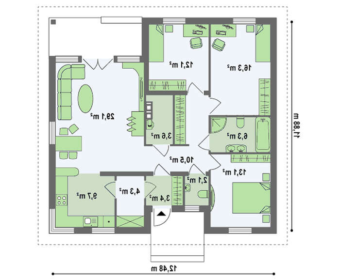 Проект 1 этажного дома по типу 4M250 с кирпичным фасадом 4M250a