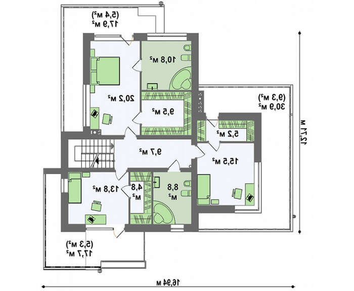Проект 2х этажного дома с плоской крышей общей площадью 270 кв.м. 4M7087