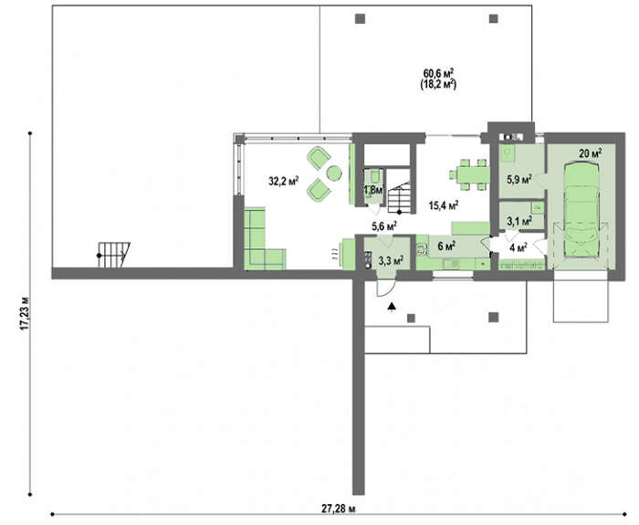 Проект содержит три раздела – Архитектурный, Конструктивный и Инженерный: водоснабжение, отопление, вентиляция, канализация, электроснабжение (приобретается за дополнительную плату) + Пояснительная записка.