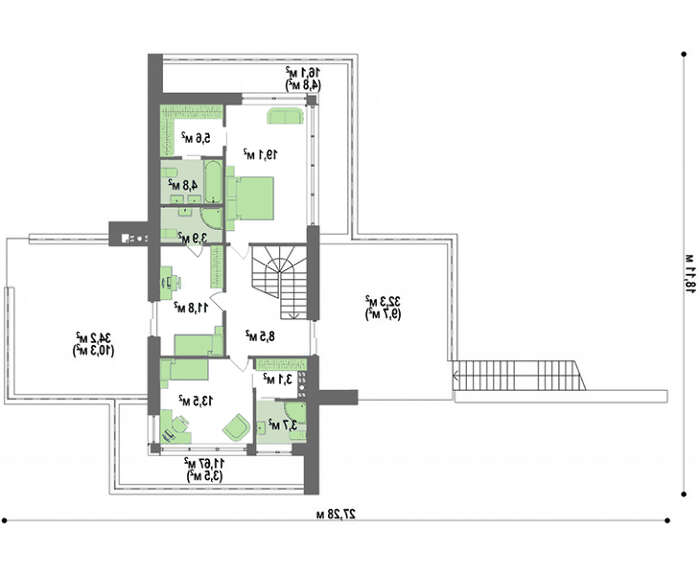 Проект содержит три раздела – АрхитектурныйКонструктивный и Инженерный: водоснабжение, отопление, вентиляция, канализация, электроснабжение (приобретается за дополнительную плату) + Пояснительная записка.