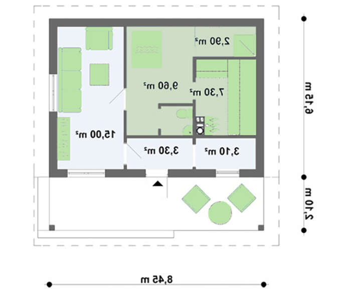 Проект содержит три раздела – Архитектурный, Конструктивный и Инженерный: водоснабжение, отопление, вентиляция, канализация, электроснабжение (приобретается за дополнительную плату) + Пояснительная записка.