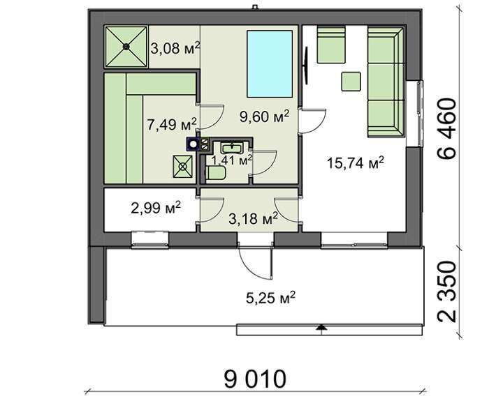 Проект содержит три раздела – АрхитектурныйКонструктивный и Инженерный: водоснабжение, отопление, вентиляция, канализация, электроснабжение (приобретается за дополнительную плату) + Пояснительная записка.