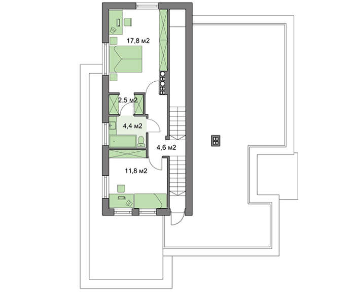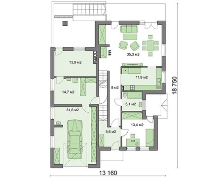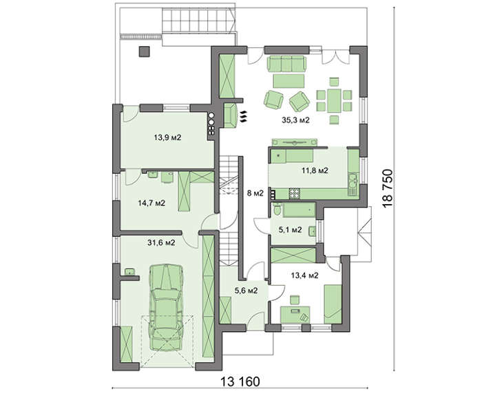Проект содержит три раздела – АрхитектурныйКонструктивный и Инженерный: водоснабжение, отопление, вентиляция, канализация, электроснабжение (приобретается за дополнительную плату) + Пояснительная записка.