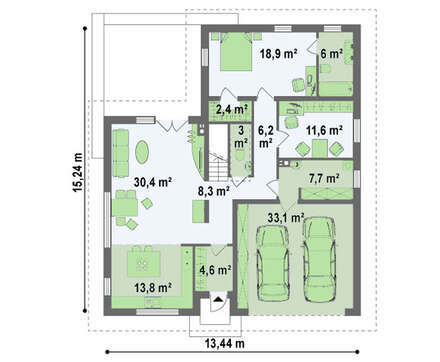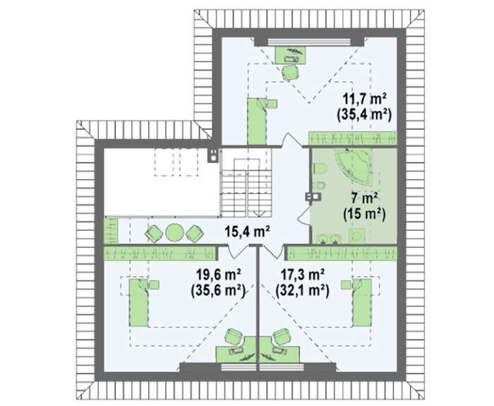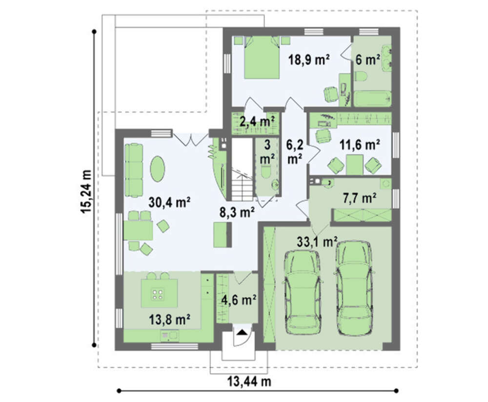 Проект содержит три раздела – Архитектурный, Конструктивный и Инженерный: водоснабжение, отопление, вентиляция, канализация, электроснабжение (приобретается за дополнительную плату) + Пояснительная записка.