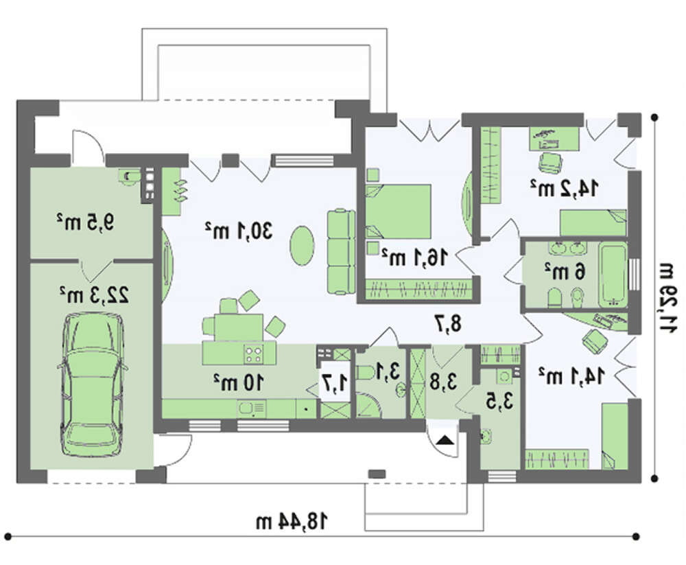 Проект содержит три раздела – Архитектурный, Конструктивный и Инженерный: водоснабжение, отопление, вентиляция, канализация, электроснабжение (приобретается за дополнительную плату) + Пояснительная записка.