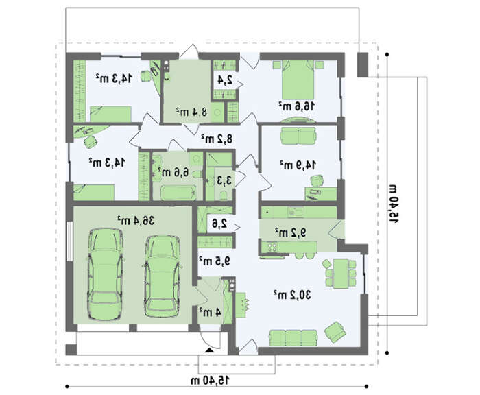 • 4M154 Проект дома с четырёхскатной крышей и гаражом на 2 машины