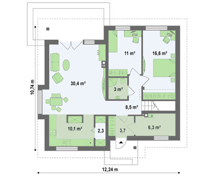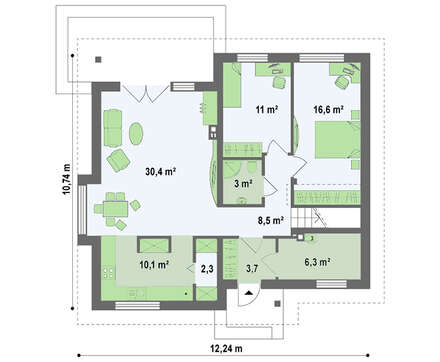 Проект дома с дополнительными спальнями на первом этаже 4M442