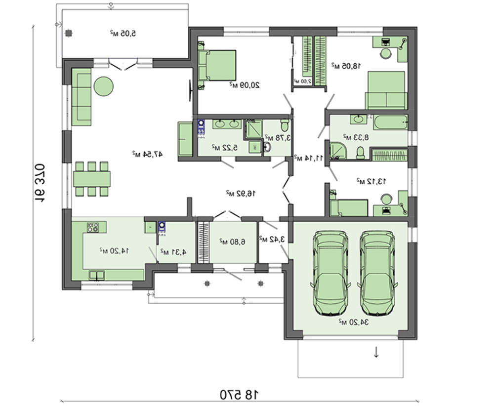 • 4M288 Проект дома с фронтальным гаражом для 2-х машин