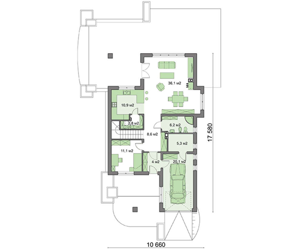 • 4M510 Проект дома с гаражом и 5 спальнями