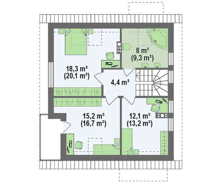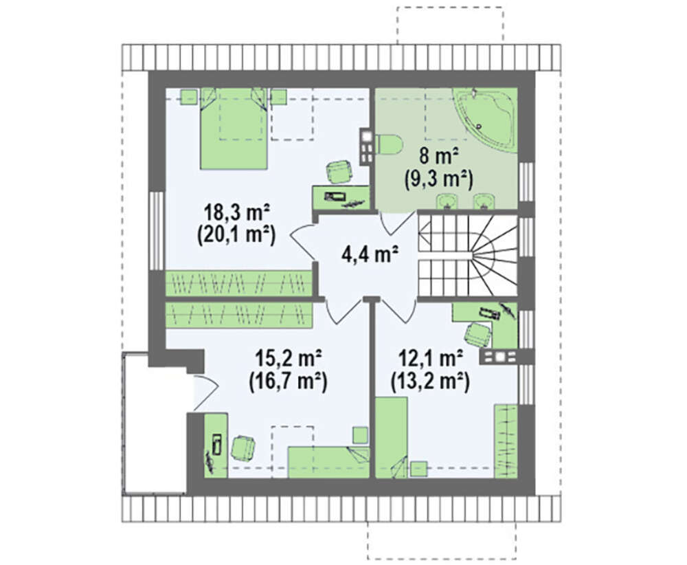 • 4M266 Загородный дом с тремя спальнями на мансардном этаже