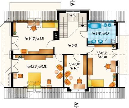 • 4M3359a Проект дома с мансардой со строгим фасадом