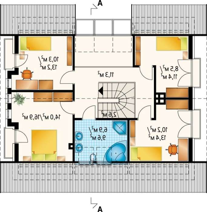 Проект дома с мансардой в традиционном стиле площадью 170 m²