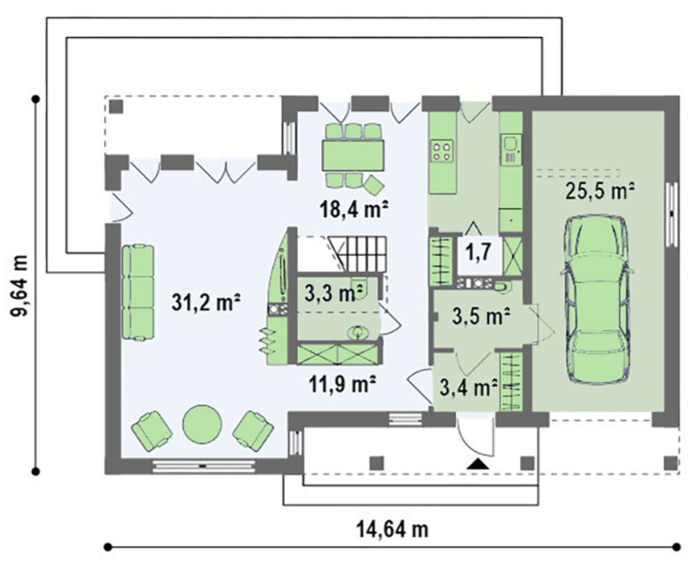 Очень удобно иметь дом с мансардой. Такие дома, как правило, строят небольшими, зато функциональными. Его практичность заключается в том, что одноэтажный дом, при помощи несложных преобразований, превращается в два этажа комфорта и покоя. Таким является дом 4М660. Он хорош еще и тем, что имеет простую двускатную крышу. Не всегда надо мудрить и строить что-то сложное. Оказывается, что простые вещи могут быть очень полезными и практичными. Мансардные окошки непросто украшают крышу, но еще и выполняют осветительную функцию второго этажа. «Все гениальное – просто» - сказал когда-то один мудрый человек, и он был прав.