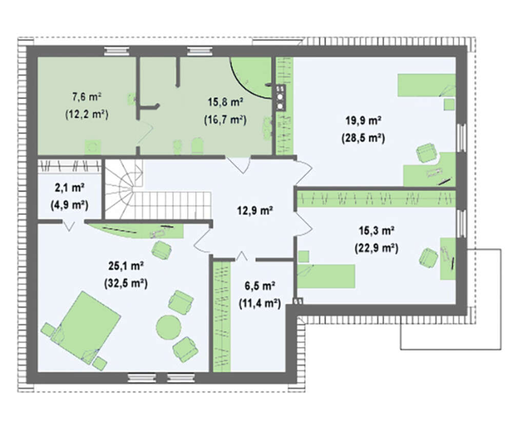 • 4M052 Проект дома с панорамными окнами в угловом эркере