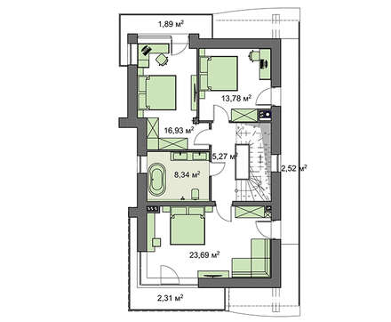 • 4M1466 Проект дома в три этажа общей площадью 169 кв. м с балконами и террасой