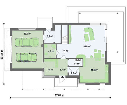 Проект содержит три раздела – Архитектурный, Конструктивный и Инженерный: водоснабжение, отопление, вентиляция, канализация, электроснабжение (приобретается за дополнительную плату) + Пояснительная записка.