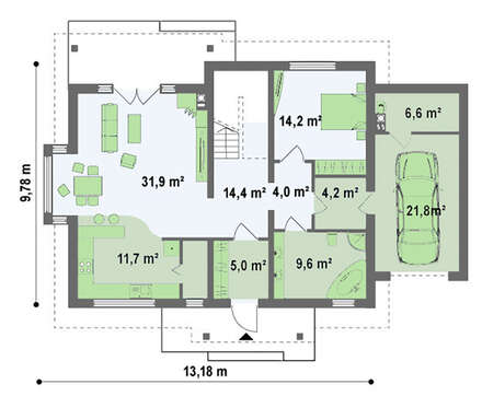 Проект двухэтажного дома с пристроенным гаражом для 1-й машины 4M532G