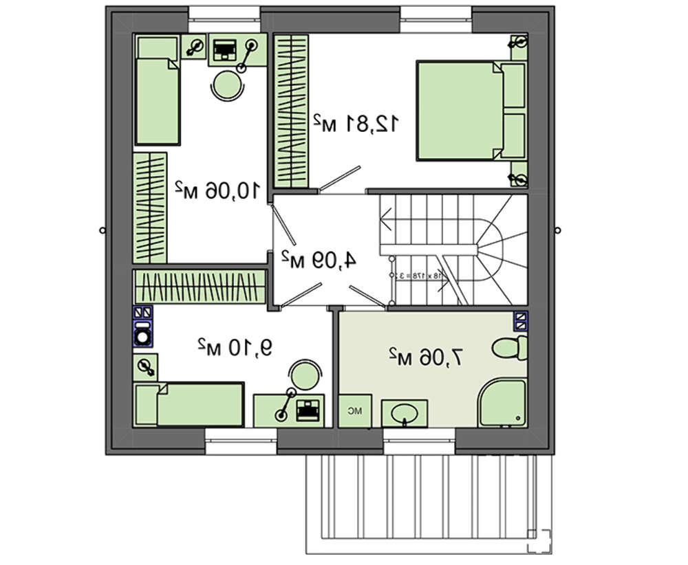 • 4M790 Проект двухэтажного коттеджа с тремя спальнями