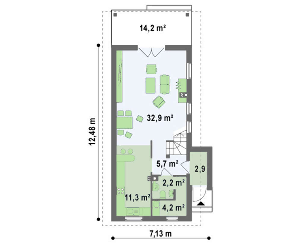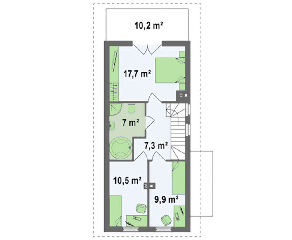 • 4M270 Проект двухэтажного небольшого дома, адаптированного под узкий участок