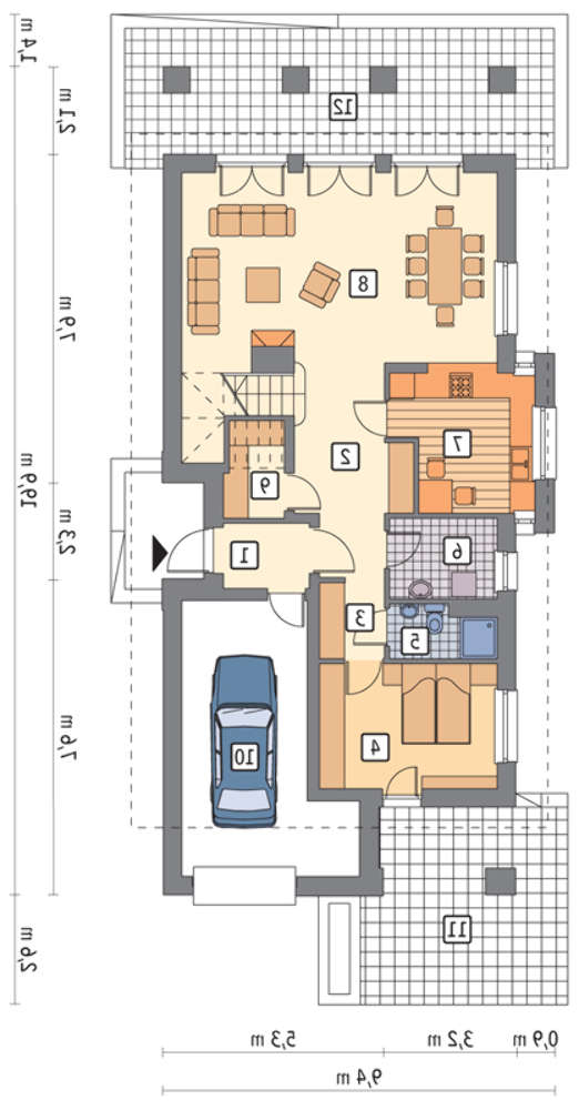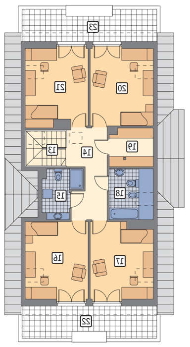 Проект содержит три раздела – Архитектурный, Конструктивный и Инженерный: водоснабжение, отопление, вентиляция, канализация, электроснабжение (приобретается за дополнительную плату) + Пояснительная записка.