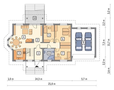 Проект содержит три раздела – Архитектурный, Конструктивный и Инженерный: водоснабжение, отопление, вентиляция, канализация, электроснабжение (приобретается за дополнительную плату) + Пояснительная записка.