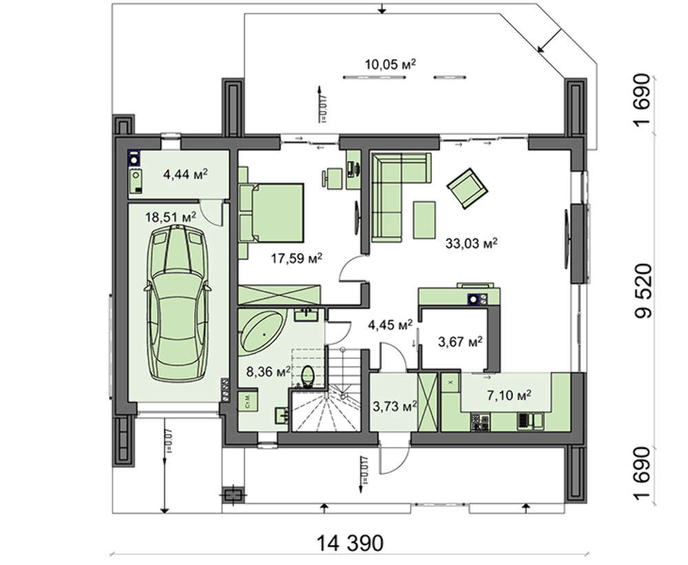 | Площадь крыши: | 171.00 м2 |
