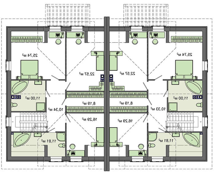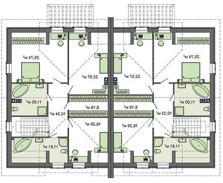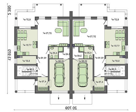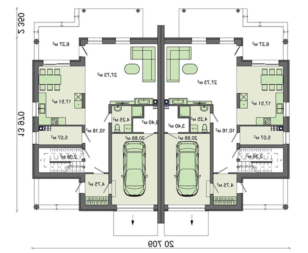 • 4M1444 Проект двухквартирного таунхауса общей площадью 416 кв. м со встроенными гаражами