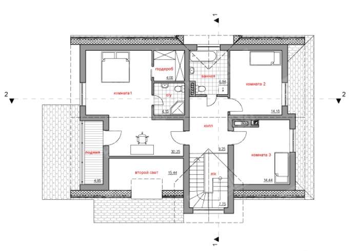 Проект содержит три раздела – Архитектурный, Конструктивный и Инженерный: водоснабжение, отопление, вентиляция, канализация, электроснабжение (приобретается за дополнительную плату) + Пояснительная записка.