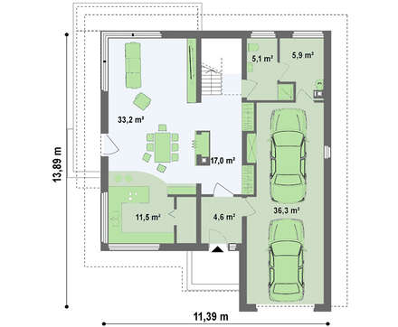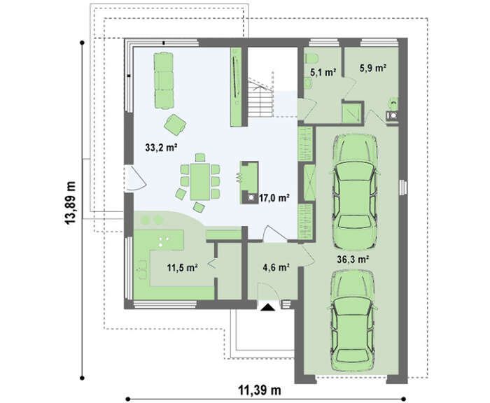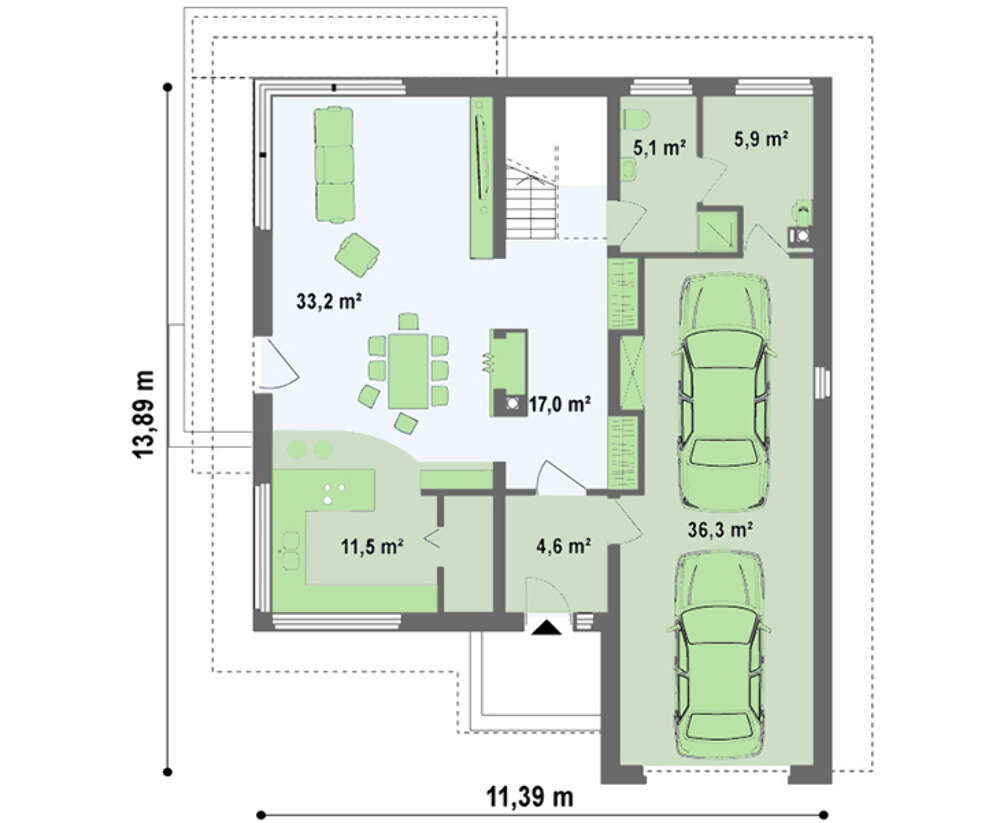 Проект содержит три раздела – Архитектурный, Конструктивный и Инженерный: водоснабжение, отопление, вентиляция, канализация, электроснабжение (приобретается за дополнительную плату) + Пояснительная записка.