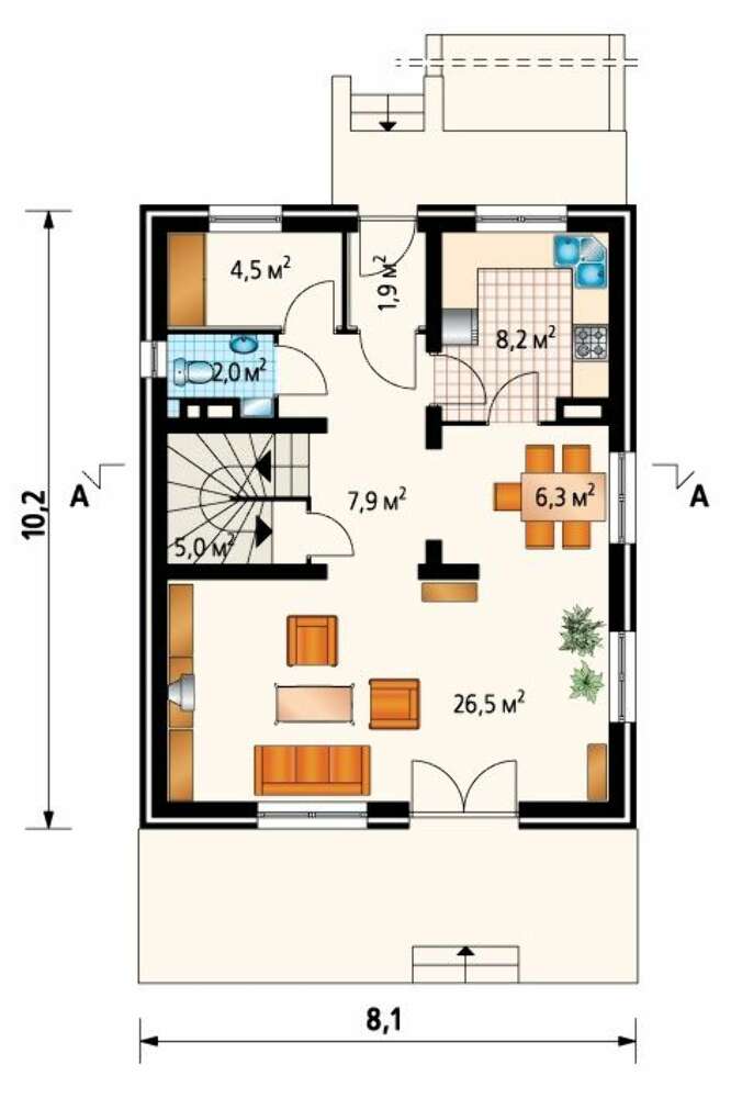 | Площадь цокольного этажа: | 35.20 м2 |