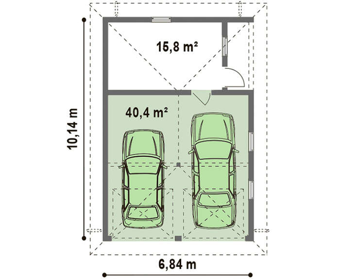 4М2751 – это шикарный гараж на две машины с двумя отдельными воротами. Дневное освещение обеспечивается при помощи квадратных окошек с правой стороны. Очень практично то, что с обратной стороны есть входная дверь, то есть в гараж можно попасть не только через ворота. Еще одним преимуществом этого гаража является подсобное помещение с тыла. Это идеальное место для хранения инвентаря, инструментов, запасных частей и колес.