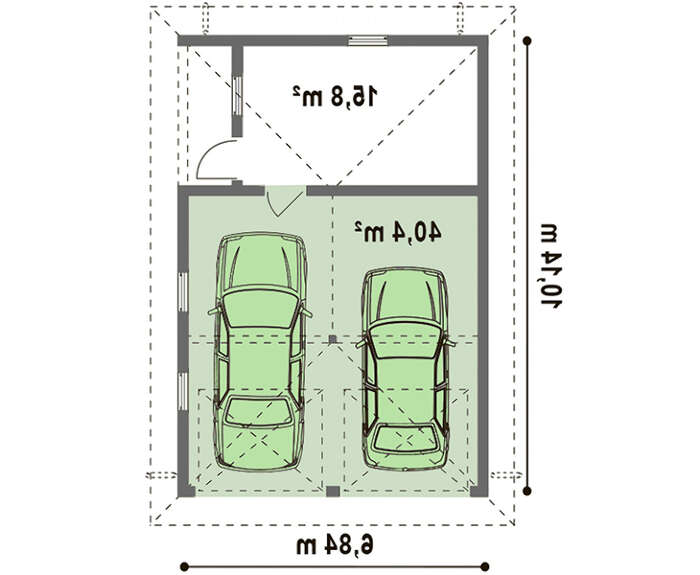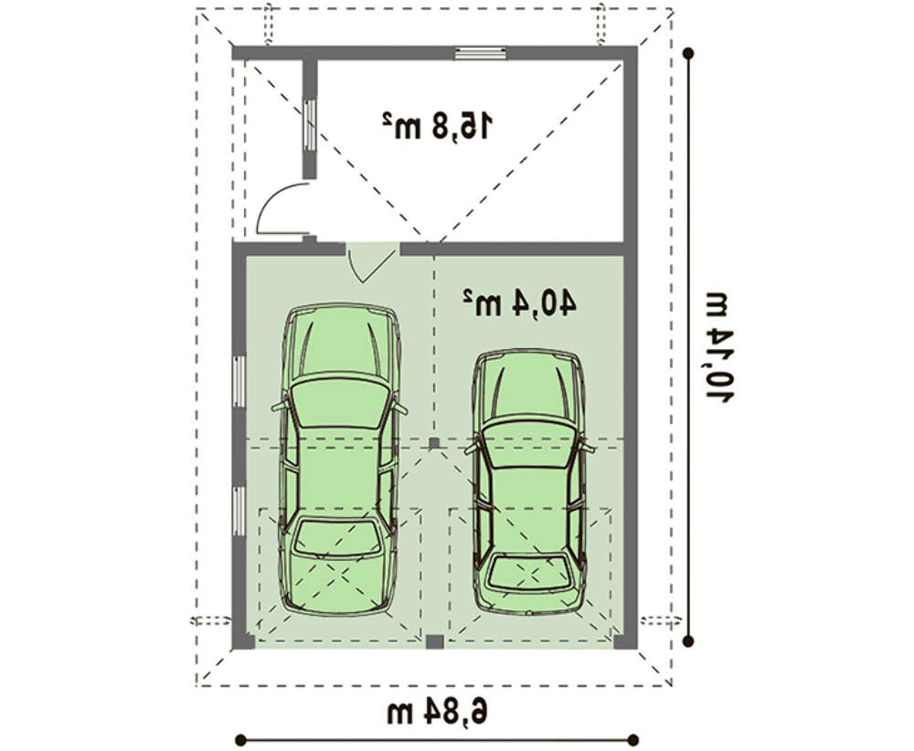 4М2751 – это шикарный гараж на две машины с двумя отдельными воротами. Дневное освещение обеспечивается при помощи квадратных окошек с правой стороны. Очень практично то, что с обратной стороны есть входная дверь, то есть в гараж можно попасть не только через ворота. Еще одним преимуществом этого гаража является подсобное помещение с тыла. Это идеальное место для хранения инвентаря, инструментов, запасных частей и колес.