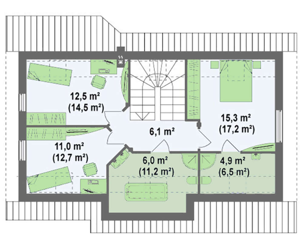 Проект содержит три раздела – АрхитектурныйКонструктивный и Инженерный: водоснабжение, отопление, вентиляция, канализация, электроснабжение (приобретается за дополнительную плату) + Пояснительная записка.