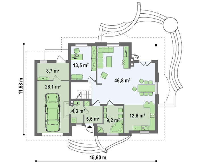 | Кровля: | керамическая черепица, металлочерепица, цементно-песчаная черепица |