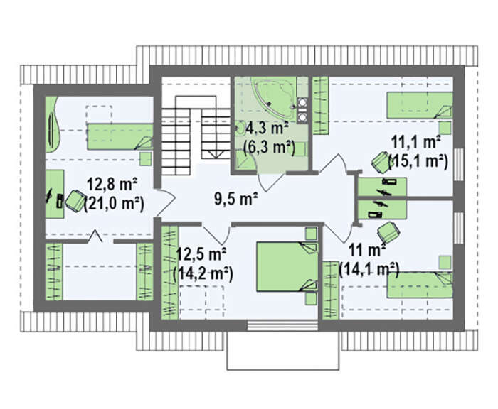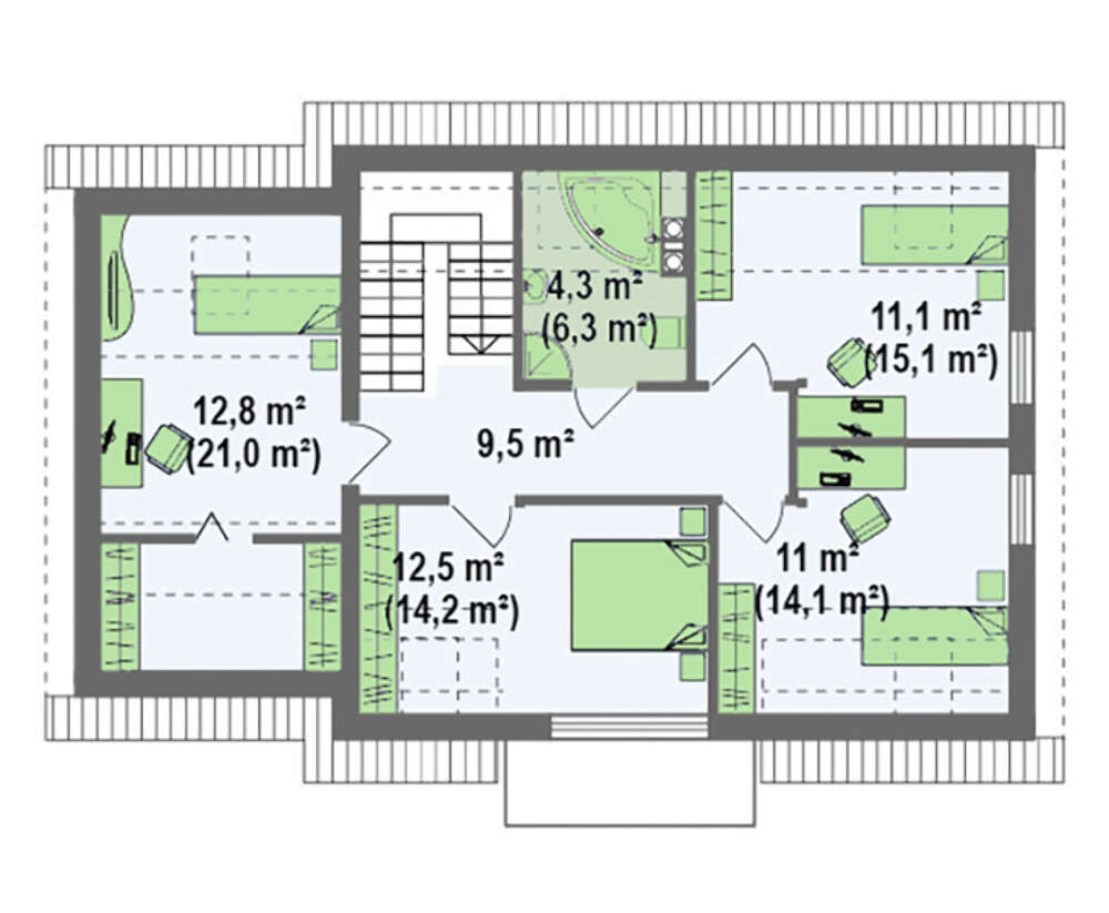 | Угол наклона кровли: | 40° / 8 ° |