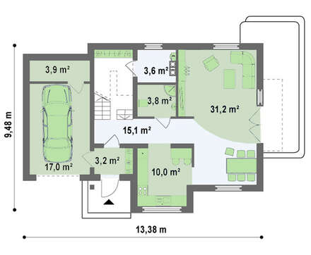 Проект содержит три раздела – Архитектурный, Конструктивный и Инженерный: водоснабжение, отопление, вентиляция, канализация, электроснабжение (приобретается за дополнительную плату) + Пояснительная записка.