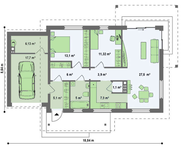 | Минимальный размер участка(длина): | 16.64 м |