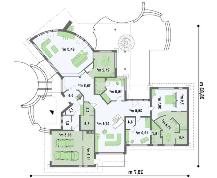 • 4M572 Проект комфортабельного особняка с гаражом для двух автомобилей