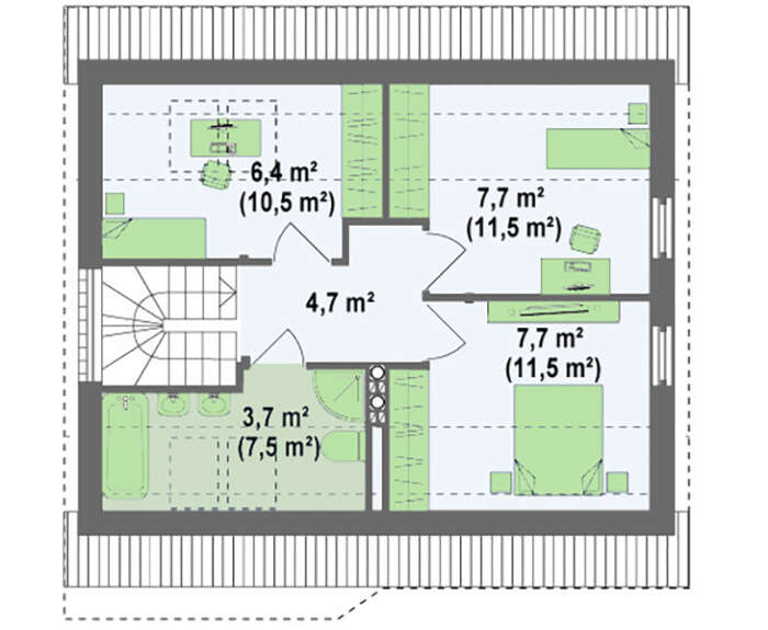 Проект содержит три раздела – Архитектурный, Конструктивный и Инженерный: водоснабжение, отопление, вентиляция, канализация, электроснабжение (приобретается за дополнительную плату) + Пояснительная записка.