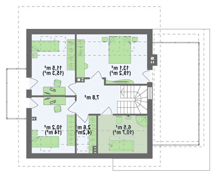 Дом 4M232 очень удачно сочетал разные оттенки серого цвета. У него даже крыша серая, что в архитектуре встречается достаточно редко. Но, вышел он очень нарядным, светлым и радостным. Ни грамма «серости» в этом доме нет. Даже самый отпетый пессимист, вряд ли сможет обвинить такой дом в обыденности и скучности. Так что, не так страшен серый, как его малюют.