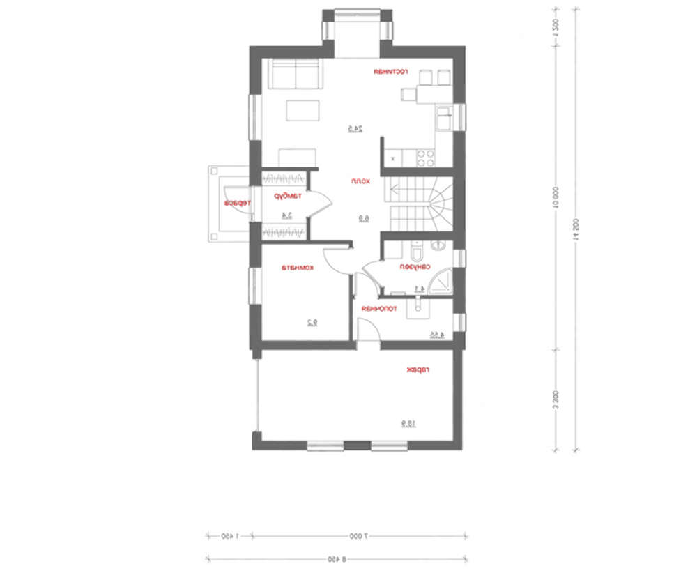 Проект содержит три раздела – Архитектурный, Конструктивный и Инженерный: водоснабжение, отопление, вентиляция, канализация, электроснабжение (приобретается за дополнительную плату) + Пояснительная записка.
