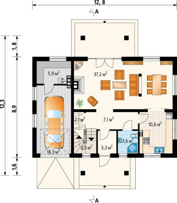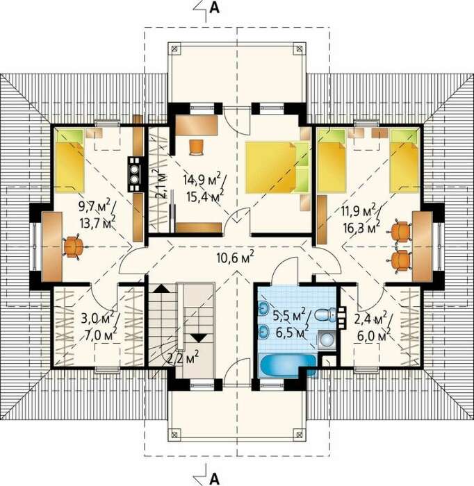 Проект коттеджа с мансардой 12 на 12 м 4M3286