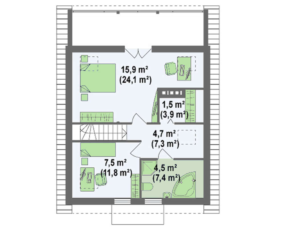 Проект коттеджа с мансардой и внешним камином по типу 4M362
