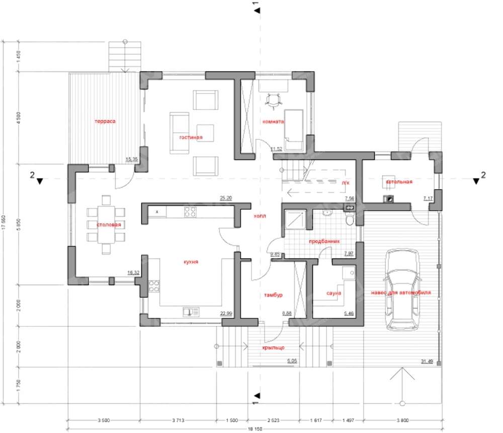 • 4M1820 Проект коттеджа с террасой, навесом для авто