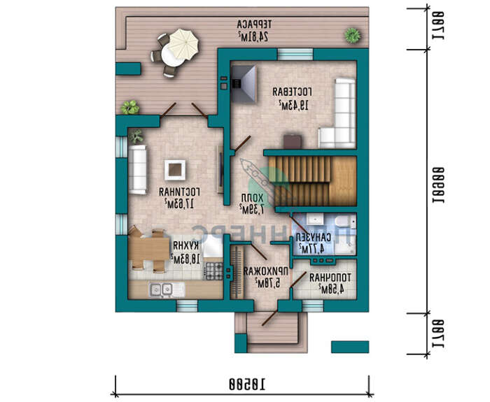 • 4M1417 Проект коттеджа в два этажа площадью 156 кв. м с шикарной террасой