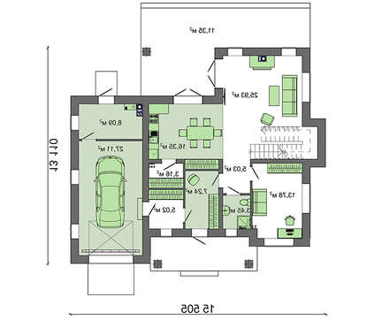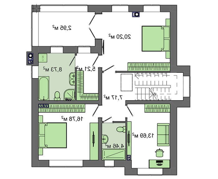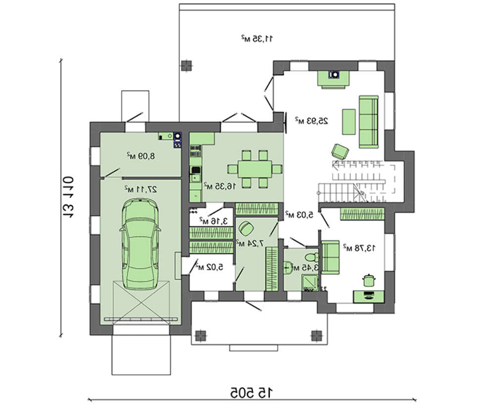 Проект содержит три раздела – Архитектурный, Конструктивный и Инженерный: водоснабжение, отопление, вентиляция, канализация, электроснабжение (приобретается за дополнительную плату) + Пояснительная записка.