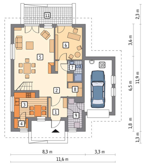 Проект содержит три раздела – Архитектурный, Конструктивный и Инженерный: водоснабжение, отопление, вентиляция, канализация, электроснабжение (приобретается за дополнительную плату) + Пояснительная записка.